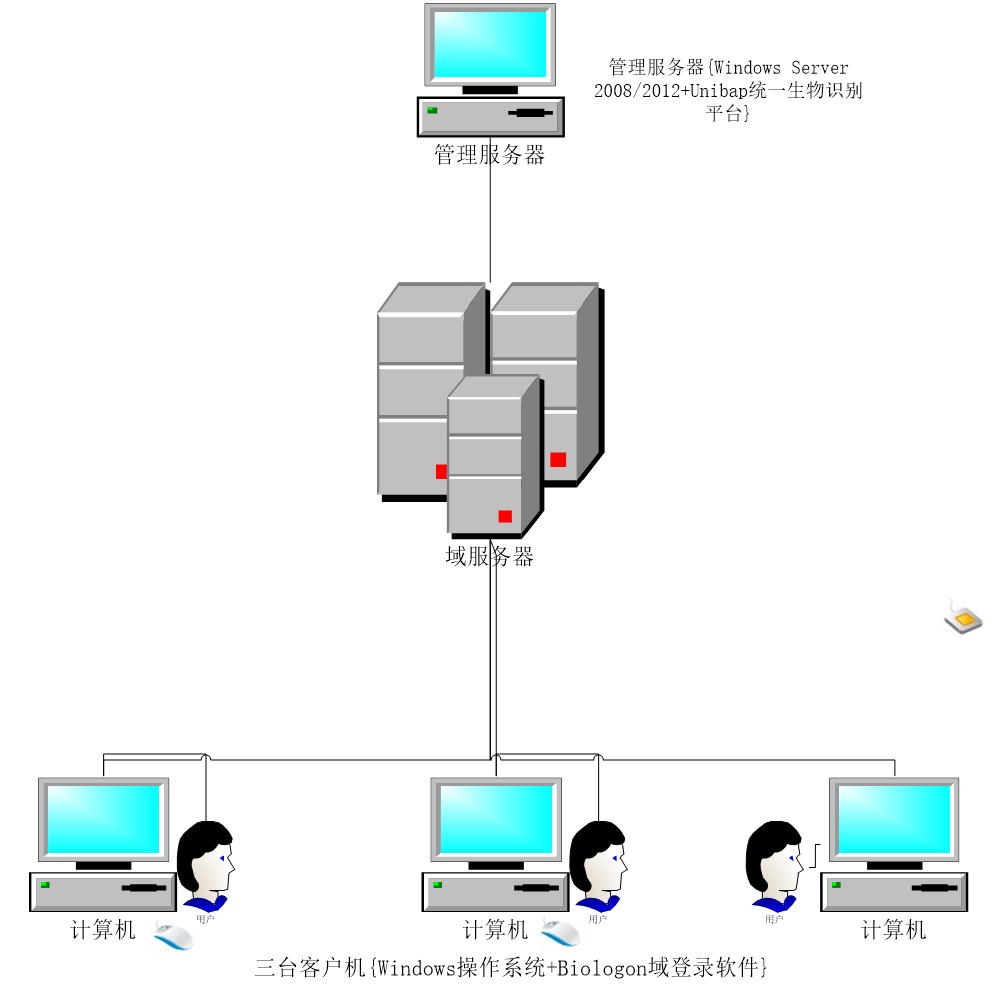 服务器端:Windows Server 2008\2012 客户端:Biologon登陆软件+指纹采集设备