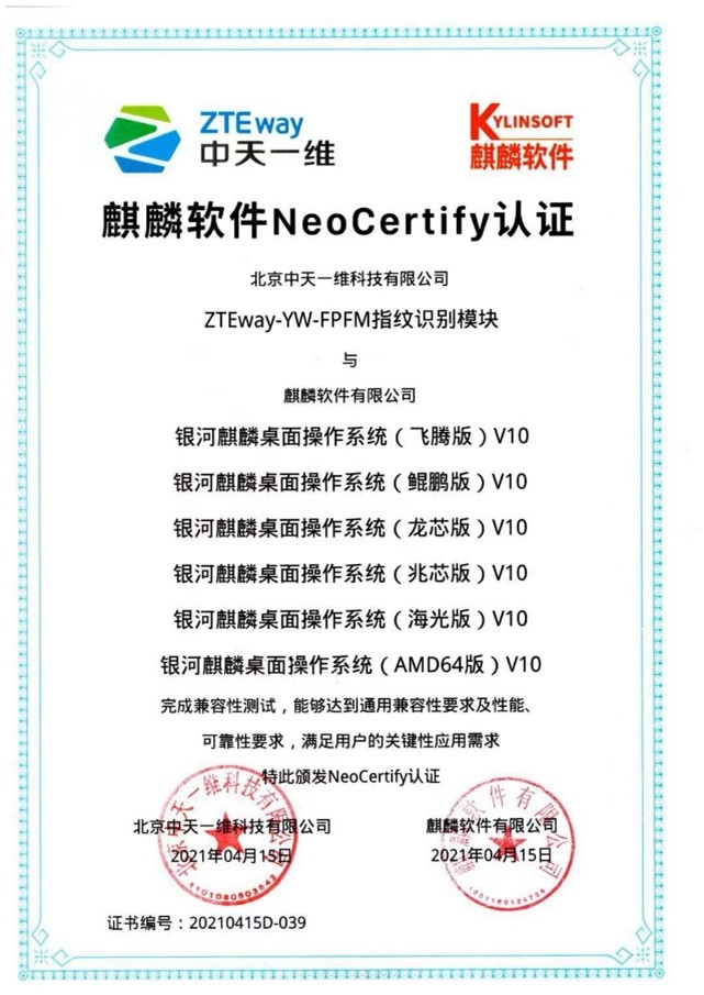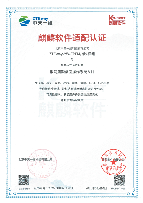 一维指纹设备驱动已完成对银河麒麟桌面操作系统的深度适配,支持(如Intel/AMD)及多种国产CPU,包括龙芯、飞腾、华为鲲鹏、海光、兆芯等,实现开机登录、锁屏解锁、sudo 提权等场景的指纹认证无缝集成。