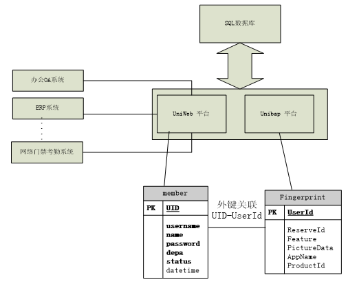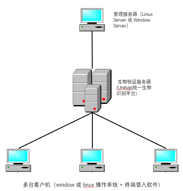 方案构成:系统由Unibap服务器端+客户端+指纹鼠标或者指纹采集仪构成。